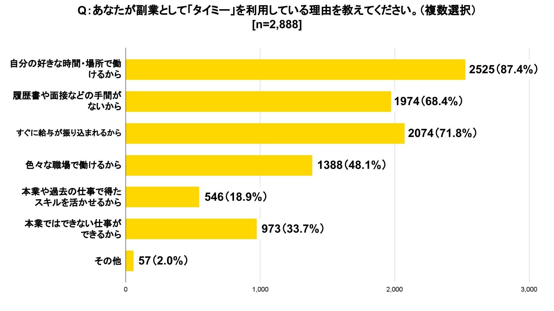 調査対象:「タイミー」の働き手のうち本業が「会社員」「会社役員」「公務員」「自営業・自由業」の2,888名