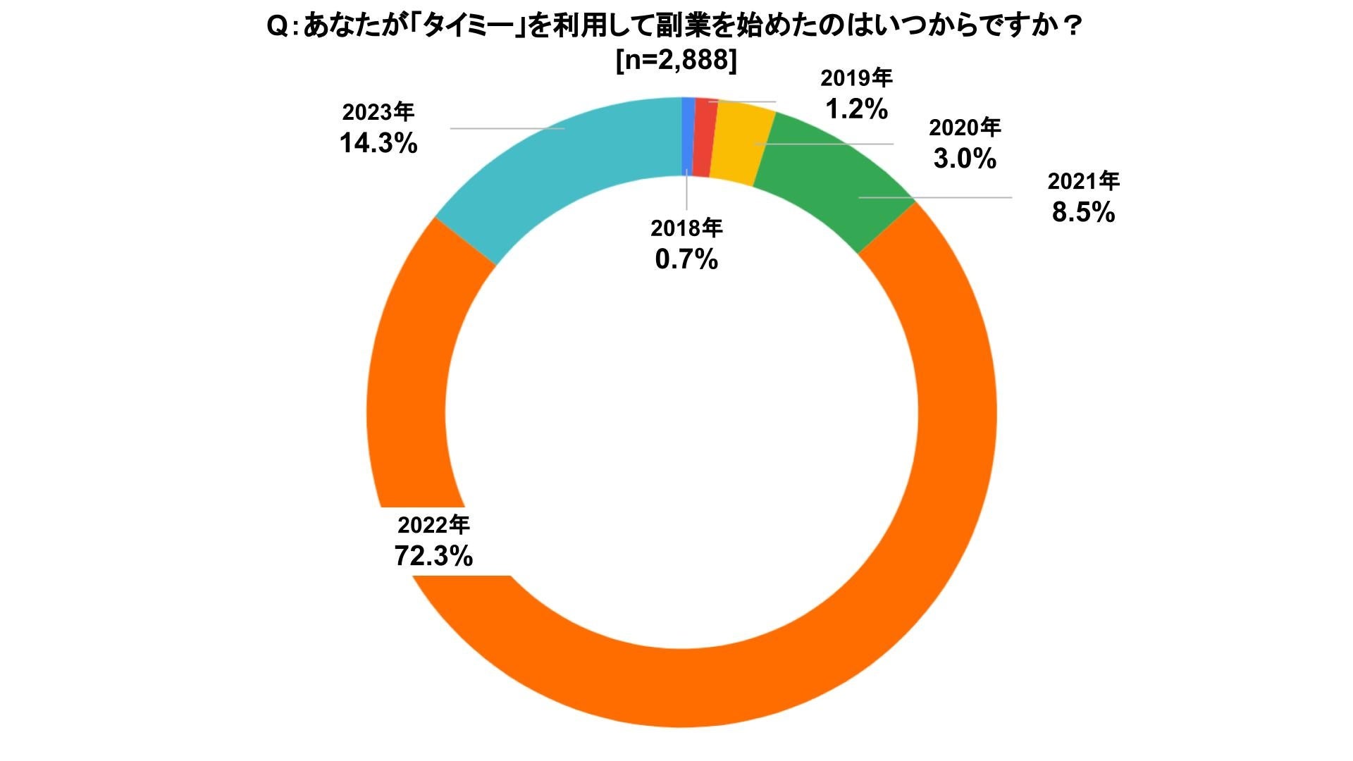 タイミー以外も含めて、副業を始めた年を聞いたところ約半数が2022年からと回答している。