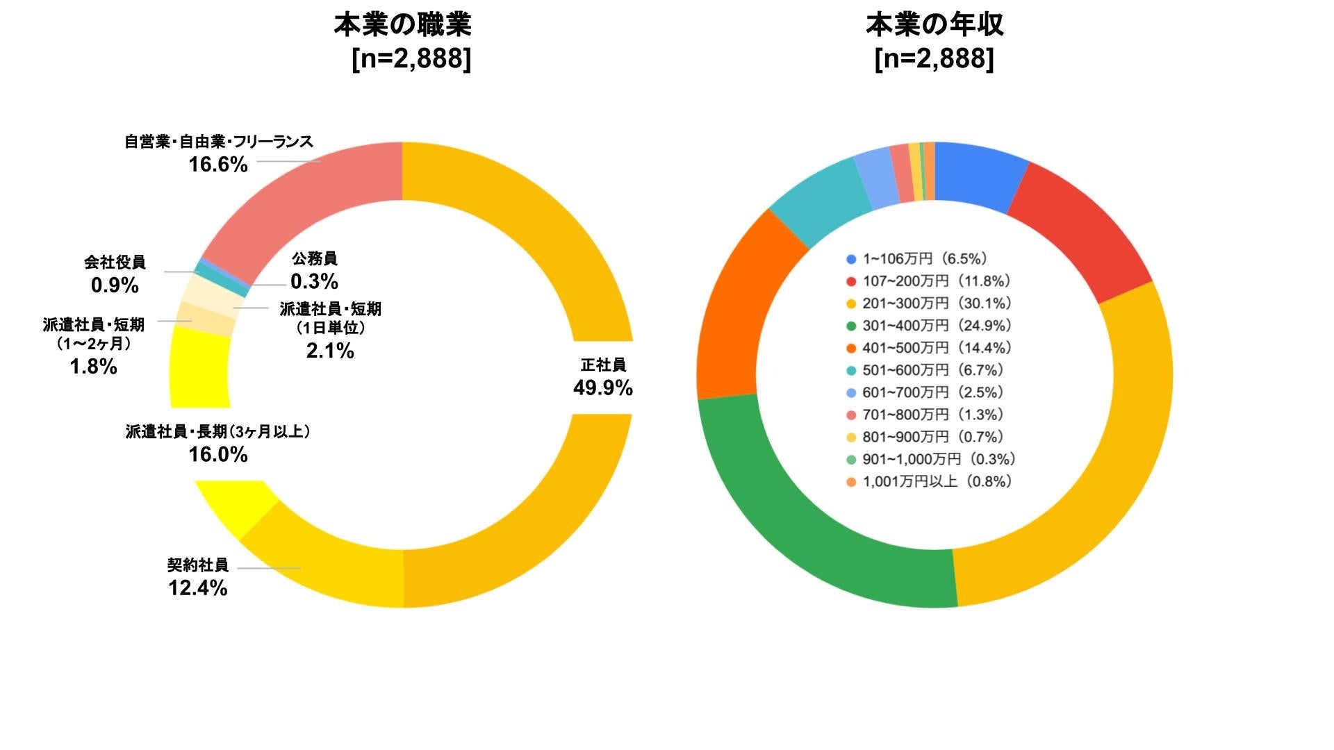 本調査の対象者の職業と年収は以下の通り。