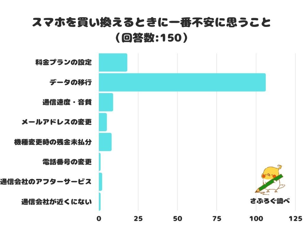 スマホを買い換えるときに一番不安に思うことをアンケートにて調査したところ、1位は「データの移行」でした。
