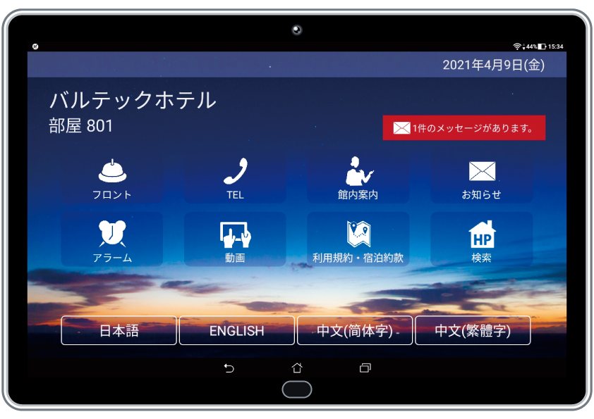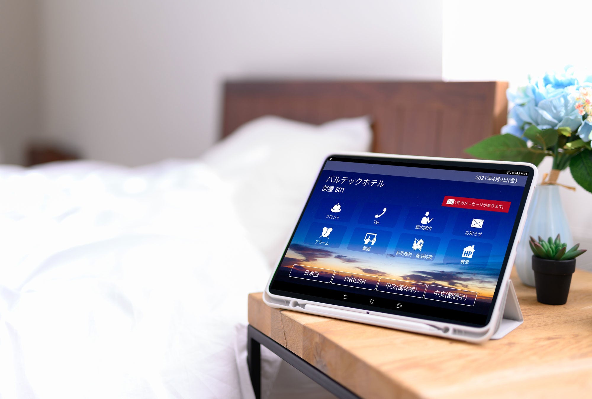 客室タブレット「MOT/Hotel Phone」は「HOT/TEL(ホッテル)」で利用可能な機能に加えて、タブレット用アプリケーションも提供。