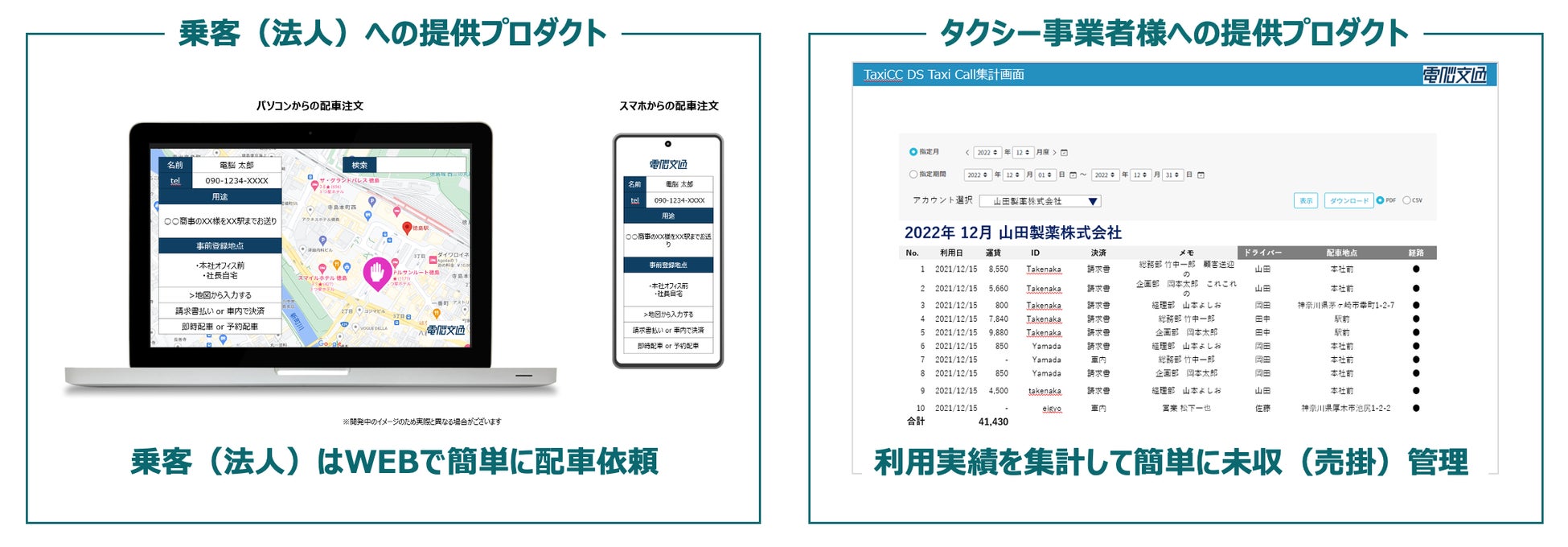 - タクシーのビジネス(法人)利用を推進する「DS Taxi Call」