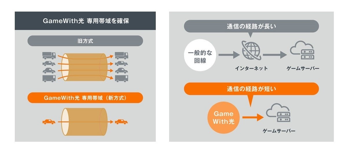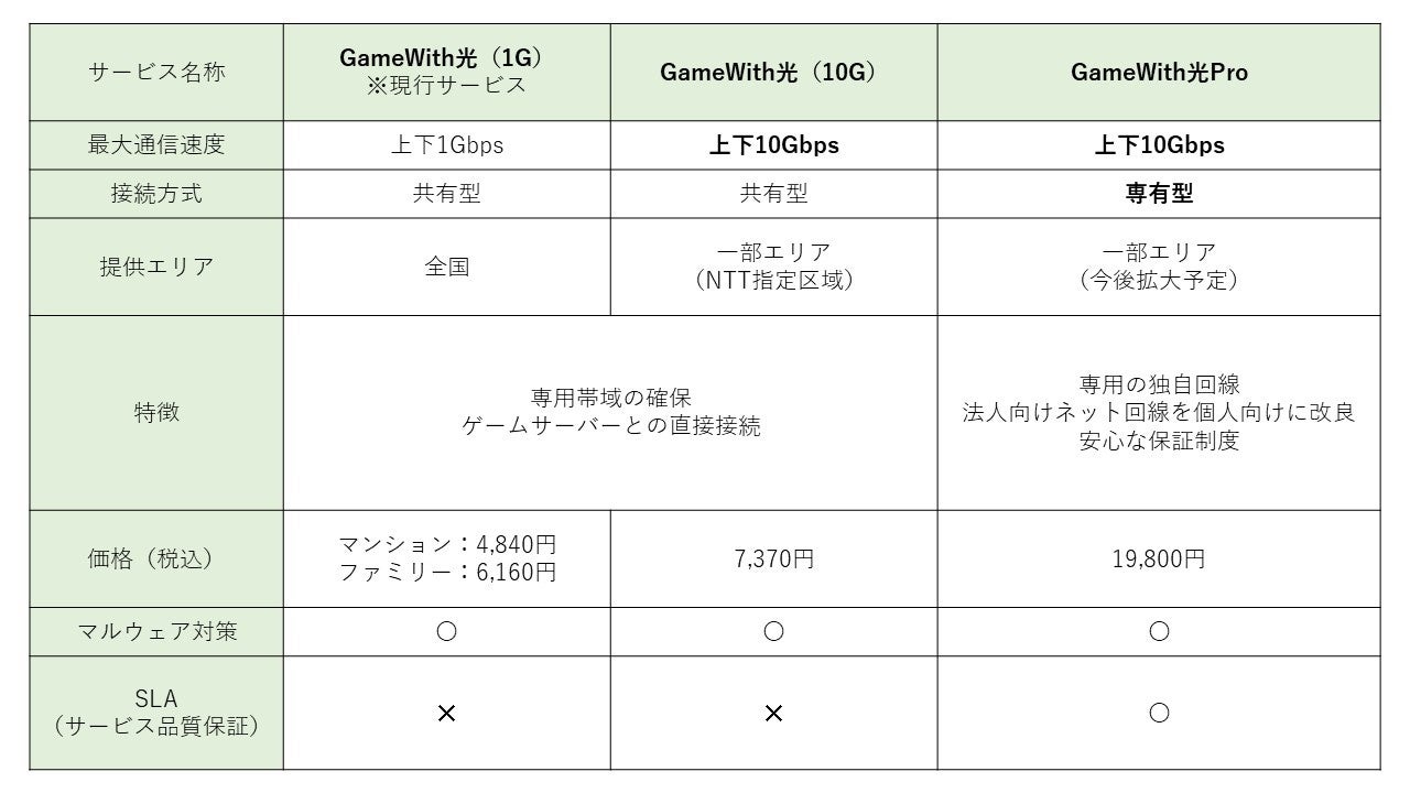 GameWith光10Gは、現行サービス「GameWith光」シリーズの高速モデル(上り下り最大10Gbps)で、大人数での同時バトルロイヤルや格闘ゲームのオンライン対戦、大容量の動画・ゲームのダウンロードなど快適にご利用いただけるプランです。