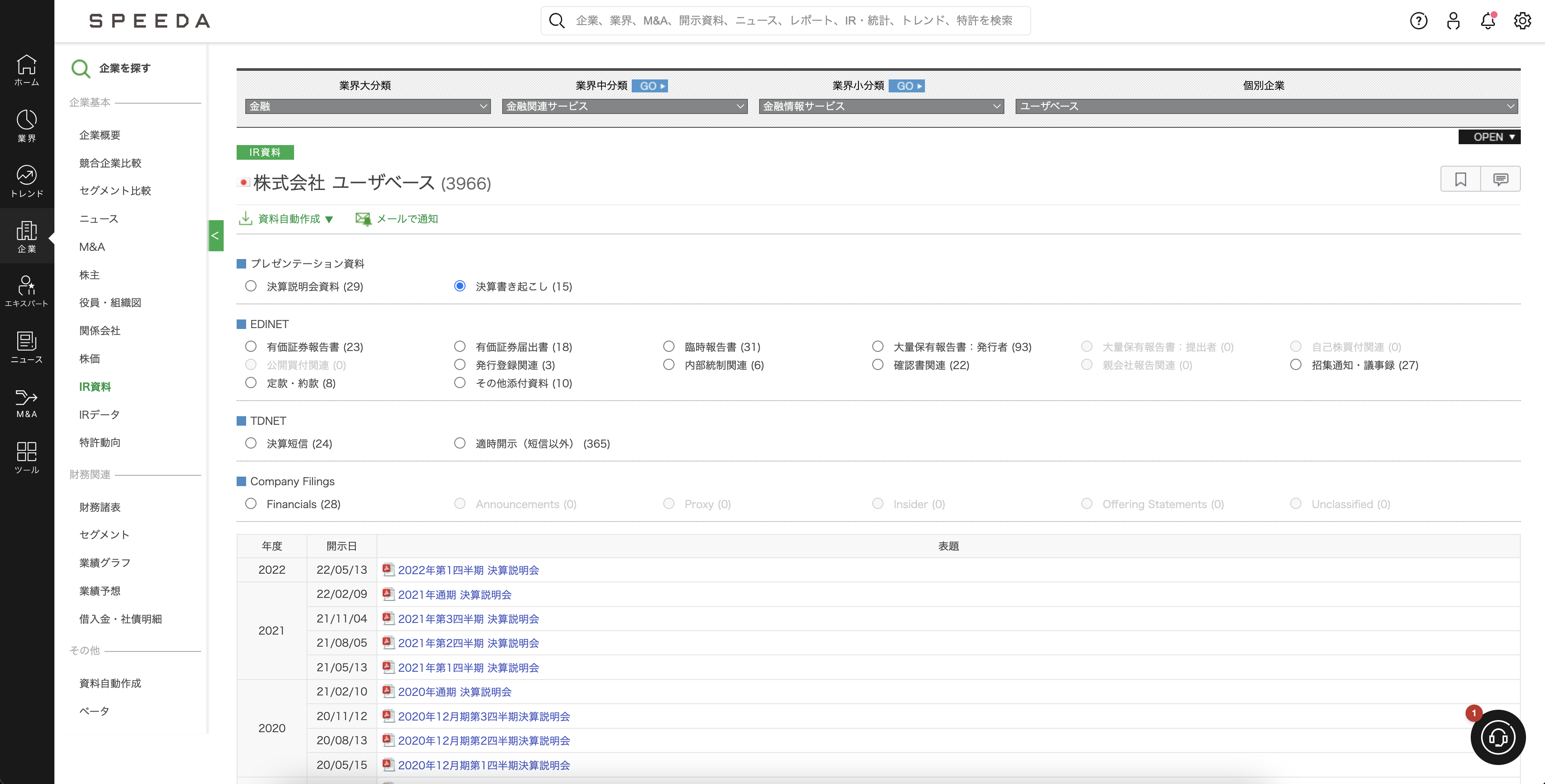 今回のScript Asiaとの提携では、まずは同社がカバーする日本企業の決算書下ろし等のコンテンツをSPEEDA上で配信してまいります。これにより、今までは主に投資家や証券会社のセルサイドアナリストのみを対象としていた日本企業の決算発表等のIRイベントに、SPEEDAユーザーは誰もがアクセスできるようになります。