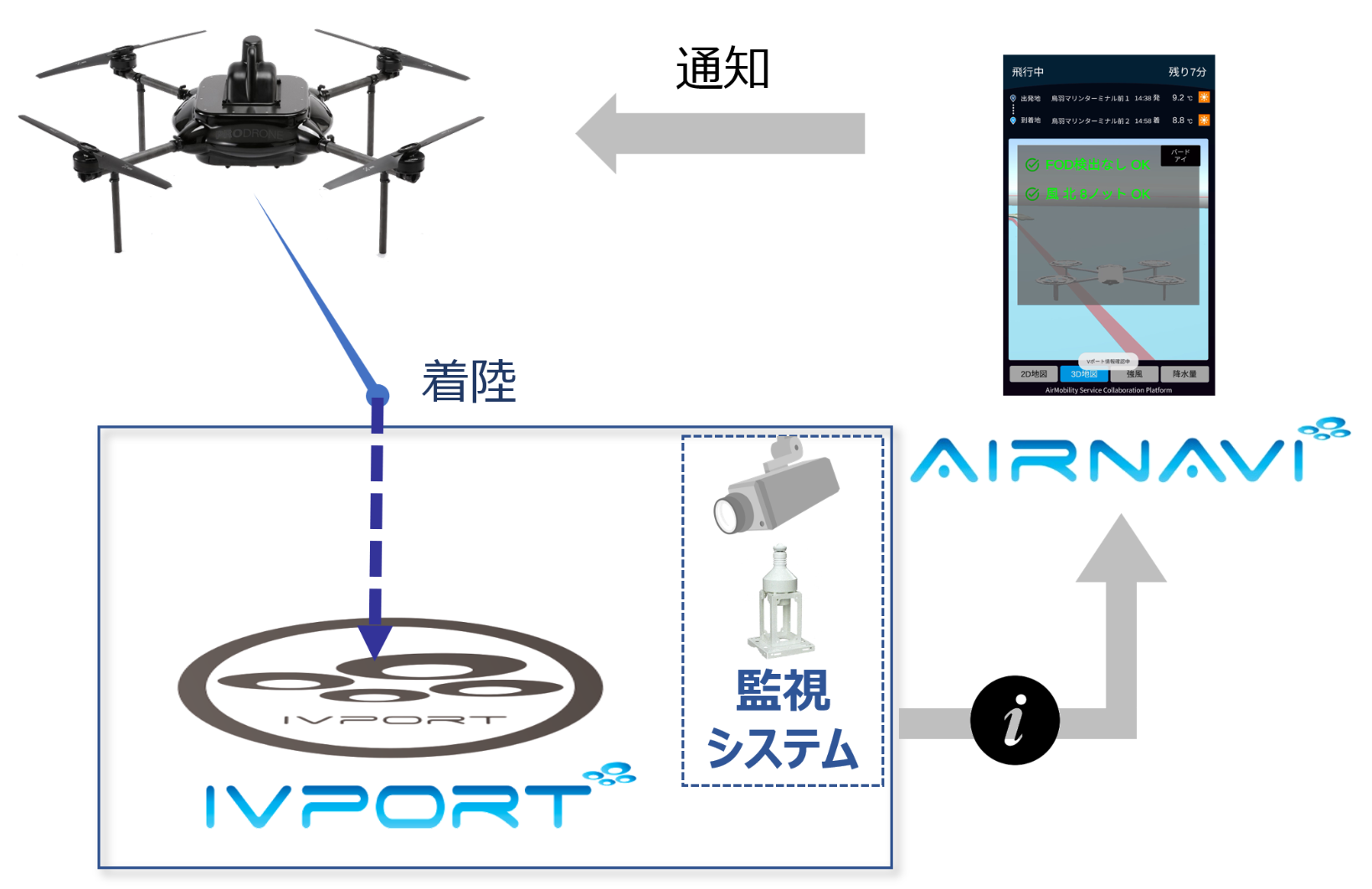 ・AirNaviの画面とIVPortのイメージ図