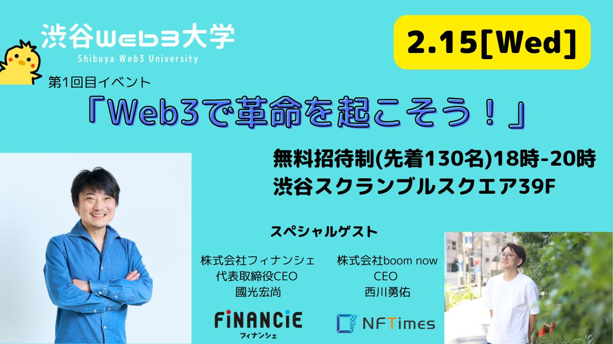 2月15日:WeWorkでの無料イベントを実施(申し込みはこちら:https://shibuyaweb3univ0215.peatix.com/)
