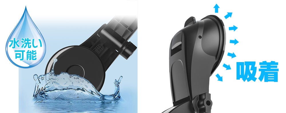 - 何度も水洗いで吸着力が回復するゲル吸盤