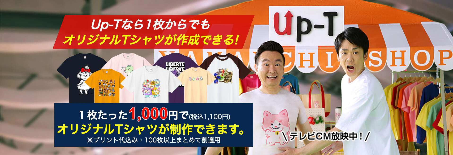 価格 :Tシャツ1枚1,100円(税込み)から ※プリント代込み、100枚以上まとめて割適用