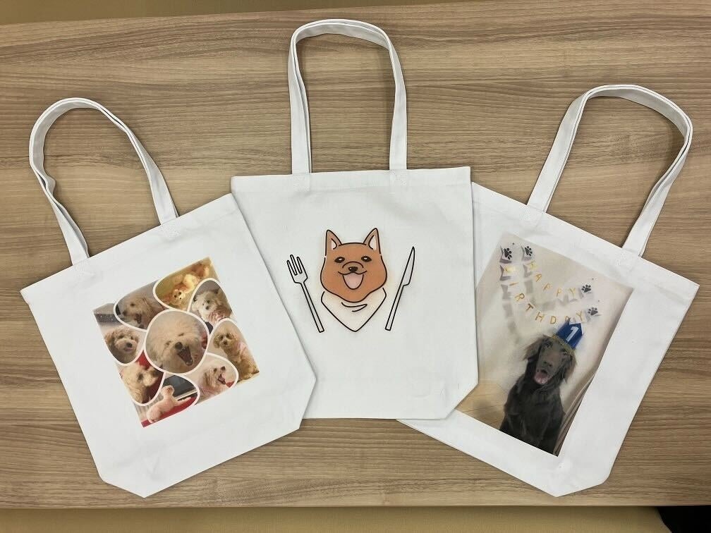 『ぐるわん』のユーザー数や口コミ店舗数を増やすことで、愛犬とお出かけできる幅をさらに広げることを目指し、リコー社内で実証実験イベントを実施しました。本イベントでは、実際に参加者に360度パノラマ画像の投稿やアプリ上での投稿画像の閲覧をしていただき、使用感に関する感想を募りました。また、リコーとの実証実験を記念し、RICOH Ri100(ガーメントプリンタ)を用いて、投稿者の愛犬のベストショットをトートバッグにプリントしてプレゼントする企画を実施いたしました。