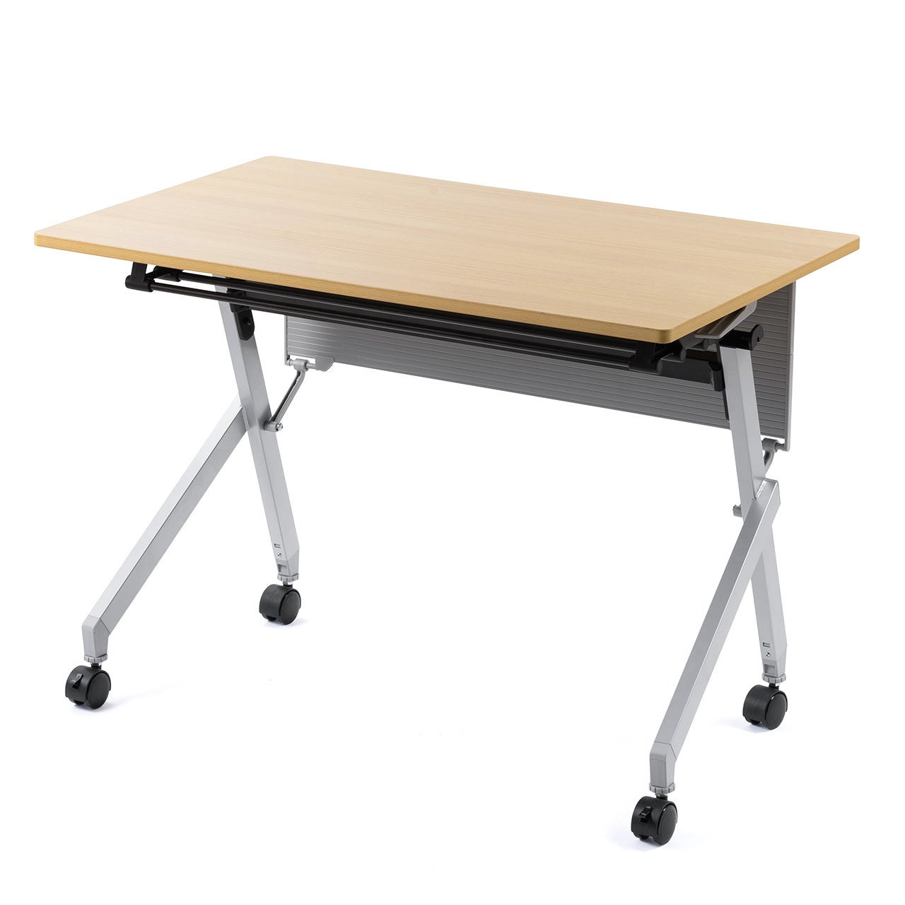 折りたたみテーブル 学習塾机 テレワーク向け 天板幅100cm 天板奥⾏60cm キャスター付き 中棚付き 幕板付き ⽊⽬調 選挙グッズ