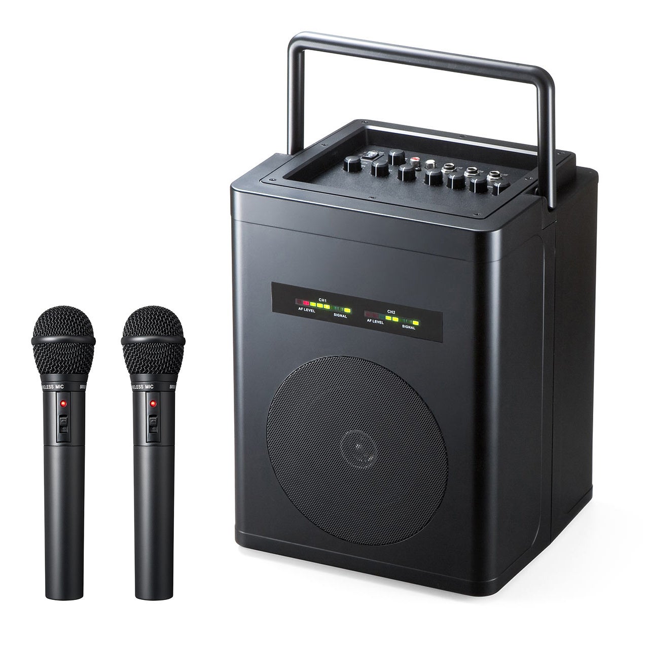 ワイヤレスマイク2本つき 拡声器 40W出⼒ PAシステム 電池駆動 AC電源 会議イベント スピーカー 選挙グッズ