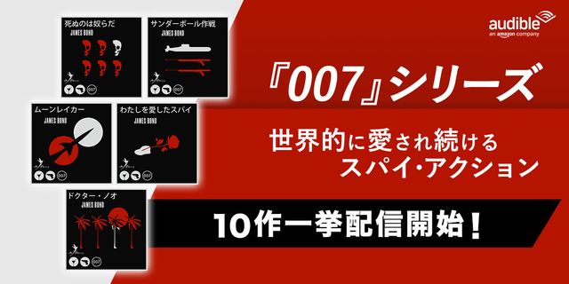 世界最大級のオーディオブック及び音声コンテンツ制作・配信サービスであるAmazonオーディブル(以下、オーディブル)にて、本日6月28日(火)よりイギリスの人気小説「007シリーズ」の日本語音声版10作品の配信が開始されます。
