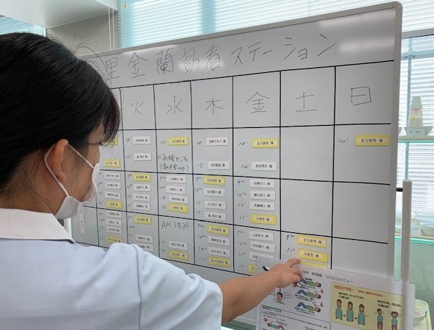 図2. 架空の訪問看護ステーションの週間スケジュールを記載したホワイトボード