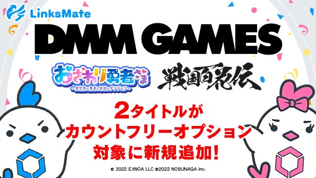 株式会社LogicLinks(以下LogicLinks、本社:東京都渋谷区、代表取締役社長:春田康一)は、MVNOサービス「LinksMate」において2023年2月7日(火)よりカウントフリーオプション対象コンテンツとして合同会社EXNOA(本社:東京都港区、CEO:村中 悠介)が提供するオンラインゲームプラットフォーム『DMM GAMES』にて配信中の「おさわり勇者さま」、「戦国百花伝」を新たに追加することをお知らせいたします。