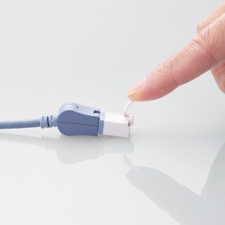 ツメ折れ防止プロテクターと屈曲に対する耐久性が高い新素材コネクターを採用したダブル構造で、ツメが折れにくいLANケーブルです。