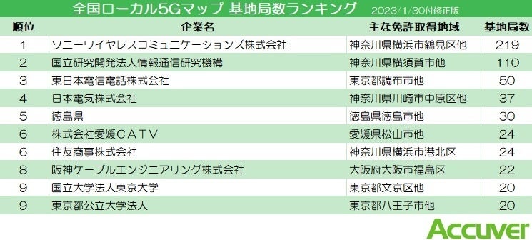 ローカル5Gマップにて収集した基地局取得データを集計し『全国ローカル5Gマップ 基地局数ランキング』として2023年1月現在の企業別TOP10を公表しましたが、ローカル5Gマップでのデータ取得に不具合がありました。