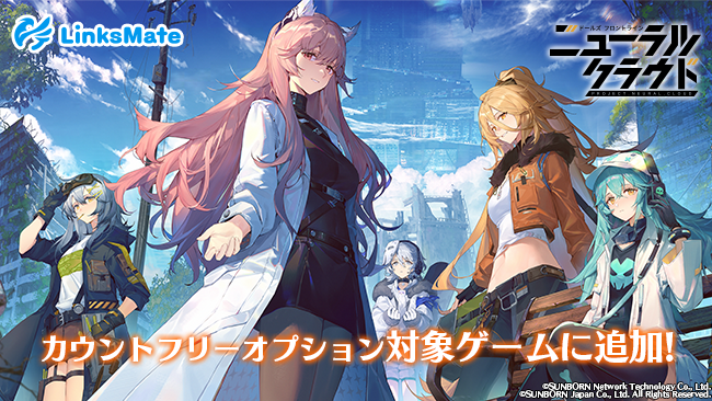 「LinksMate」は、ゲームプレイヤーのためのデータ通信を提供するサービスで、ゲーム・コンテンツ・SNSのデータ通信量のカウントが90%以上OFF(※)になる「カウントフリーオプション」や、対象ゲームと連携することで各ゲームの特典がもらえる「ゲーム連携」を特徴としております。