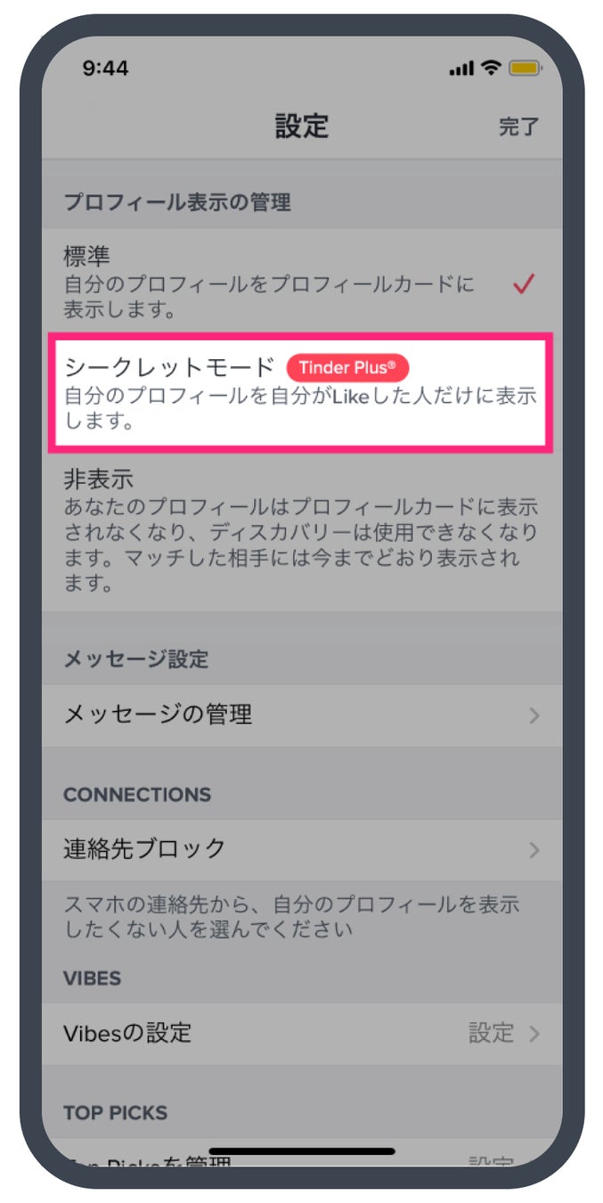 ※1)シークレットモードは、Tinder+、Tinder GOLD、Tinder PLATINUMの有料会員のみが利用できる機能です。