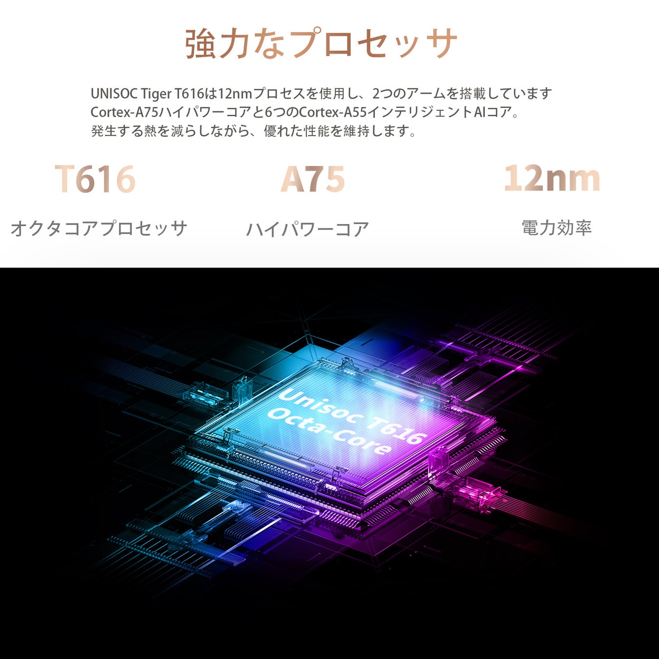 Teclast T40Pro タブレット は、UNISOC Tiger T616プロセッサを利用するために、2.0GHzの周波数と12nm低消費電力を備え、2つのArm Cortex-A75ハイパワーコアと6つのCortex-A55インテリジェントAIコアを搭載しています。 発熱を抑えながら優れた性能を維持できます。距離センサー、光センサーなどを搭載します。明るさ自動調整できます。ケースを利用すると、自動ロック/ロック解除も簡単に実現できます。より良いユーザー体験を提供します。新しくアップグレードされた Android 12 オペレーティング システム