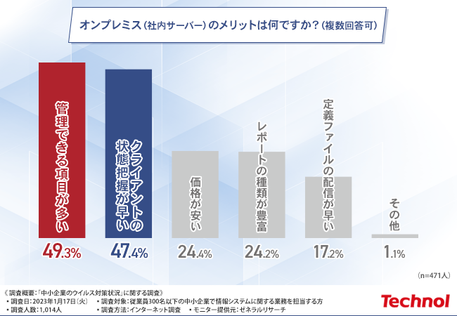 オンプレミス(社内サーバー)で管理している方と、クラウドサーバーで管理している方が同じくらいいるようですが、オンプレミスのメリットとは一体何なのでしょうか?