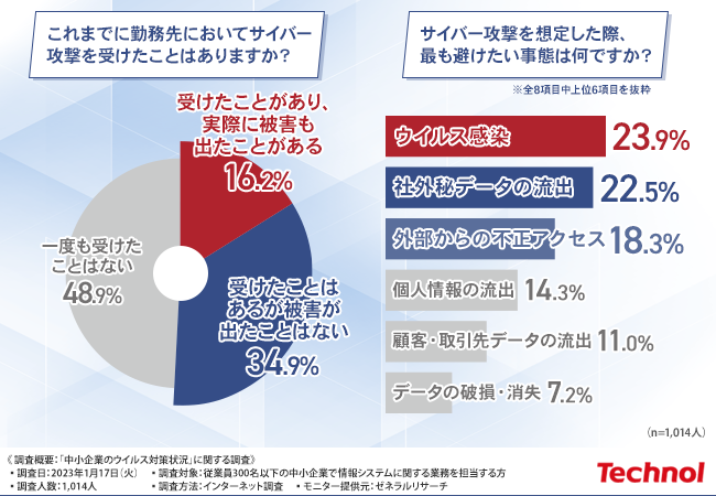 - 半数の企業がサイバー攻撃を受けたことがある!そのうち実際に被害を受けたところも
