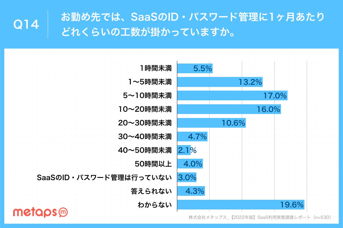 パスワードの再発行や入退社手続きの時に多く発生するSaaSのID・パスワード管理の対応が「月に10時間以上掛かっている」が約4割に上りました。