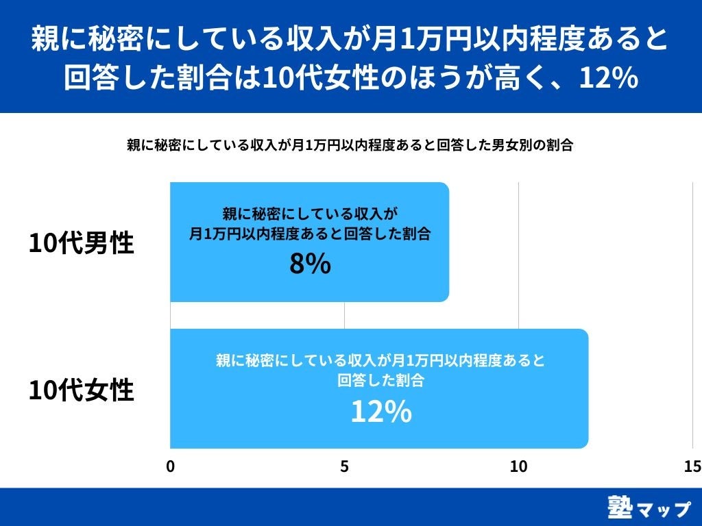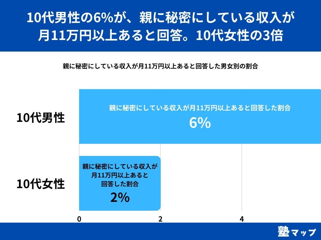 【10代男性の6%が、親に秘密にしている収入が月11万円以上あると回答。10代女性の3倍】