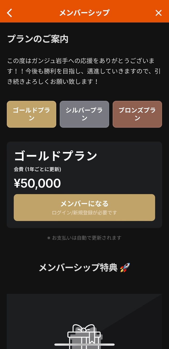 メンバーシップ機能からファンクラブ会員になって頂くと、チームから特別なグッズをお届けします!