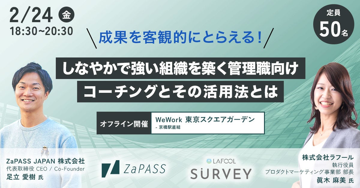 本セミナーでは、コーチングサービスを提供するZaPASS社とラフールより、組織を本質的にしなやかに強くするための「本当に効果のある」管理職向けコーチングとはどのように行われるべきなのかについてお伝えします。