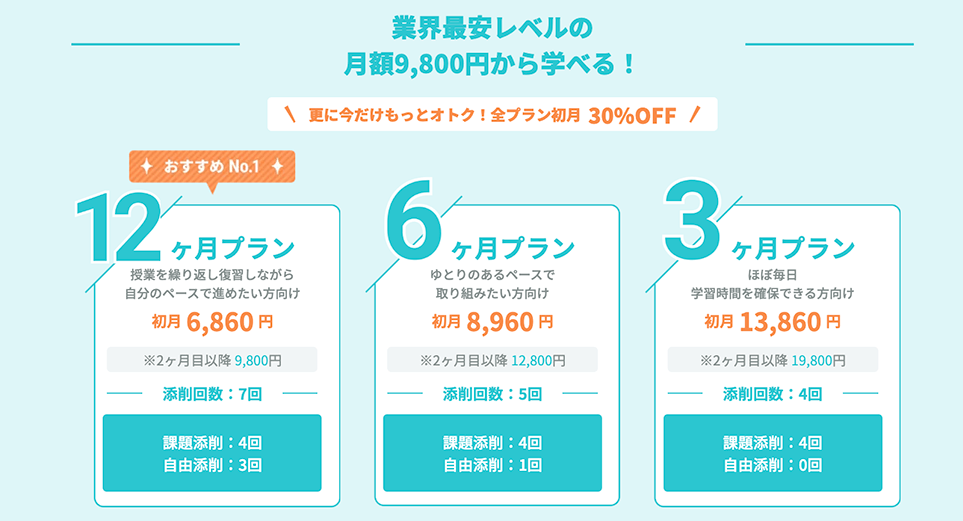 3ヶ月プラン :初月13,860円 (通常:月額19,800円)