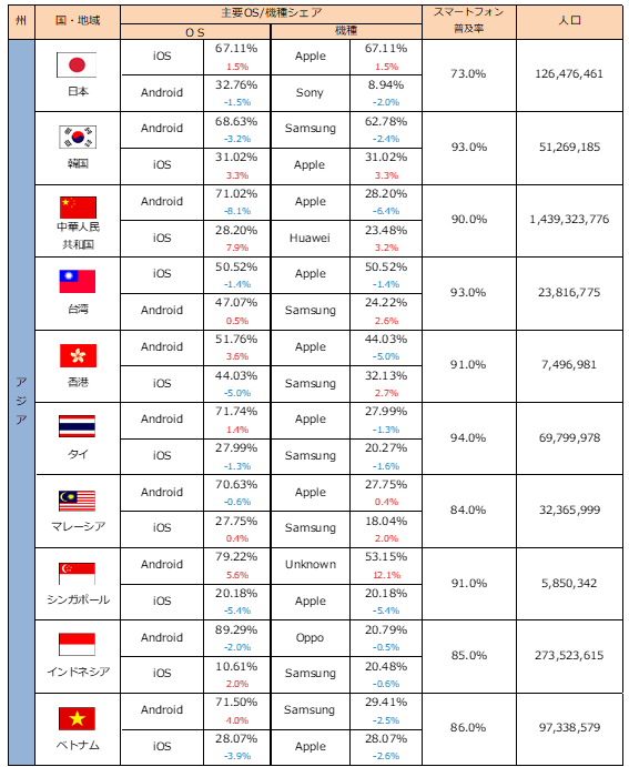 この度、世界40カ国を対象に、2023年12月時点のモバイルにおける各国主要OS・機種シェアについて調査いたしました。