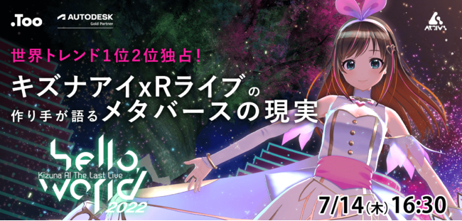 バーチャルタレントのプロデュース・企画・運営事業を展開するActiv8株式会社(本社:東京都渋谷区、代表取締役:大坂 武史)は、株式会社Too(本社:東京都港区虎ノ門3-4-7、社長:石井剛太)とオンラインLIVE配信とリアル開催のハイブリッドイベント「世界トレンド1位2位独占!キズナアイxRライブの作り手が語るメタバースの現実」を2022年7月14日(木)に開催します。