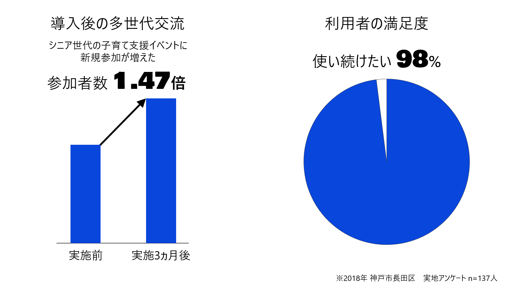 HPやSNS、Chatツールでは得られなかったこども食堂への新規参加があり、育児世代の母親や児童委員さんからのお礼、シニアのつながりも復活したという声をいただくようになり、総利用者数は64万人、25地域団体を越えています。