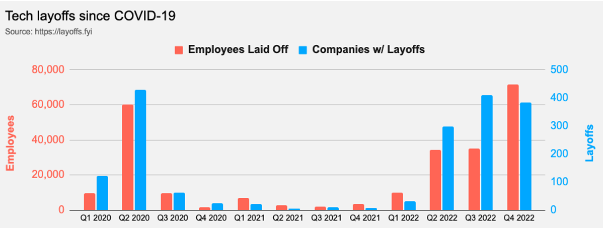 出典:テック企業におけるコロナ以降のレイオフ状況