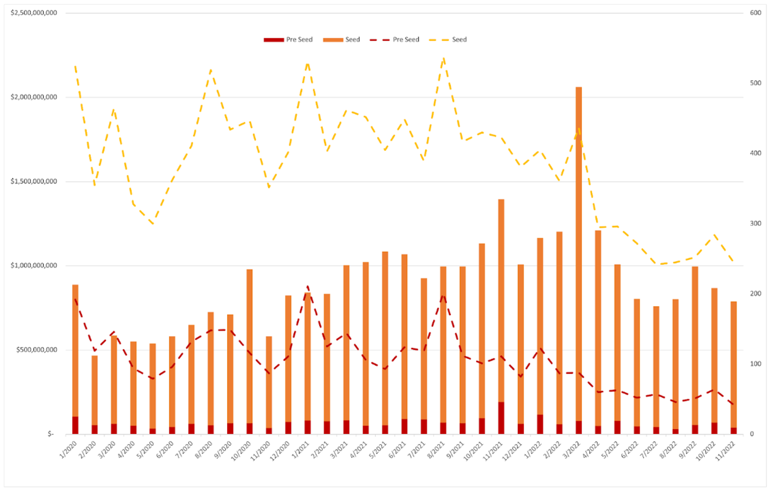 米国市場のシード/Preシードのベンチャー投資推移(当社調べ)