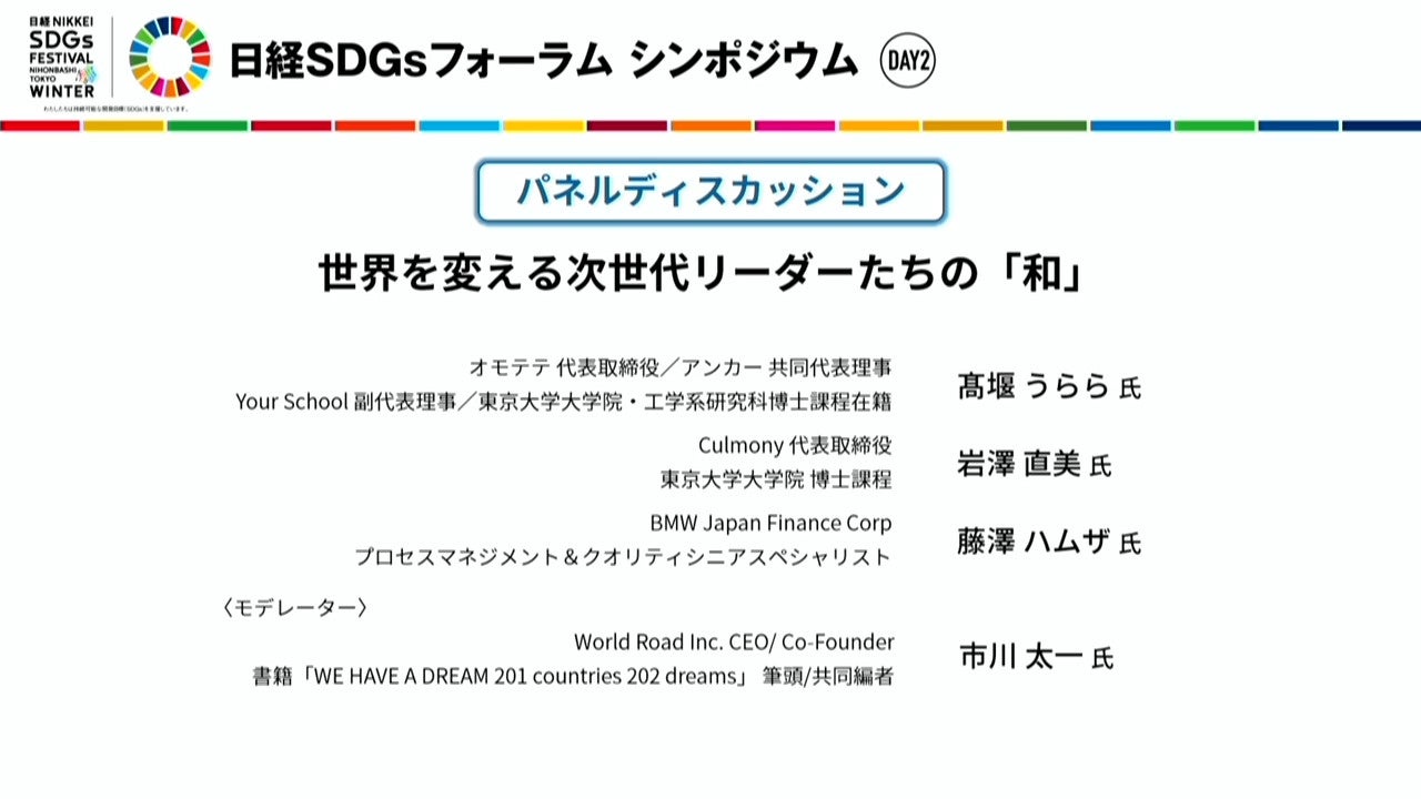 引用 : 日経チャンネル パネルディスカッション「世界を変える次世代リーダーたちの『和』」 https://channel.nikkei.co.jp/202212forum/202212forum_archive20.html