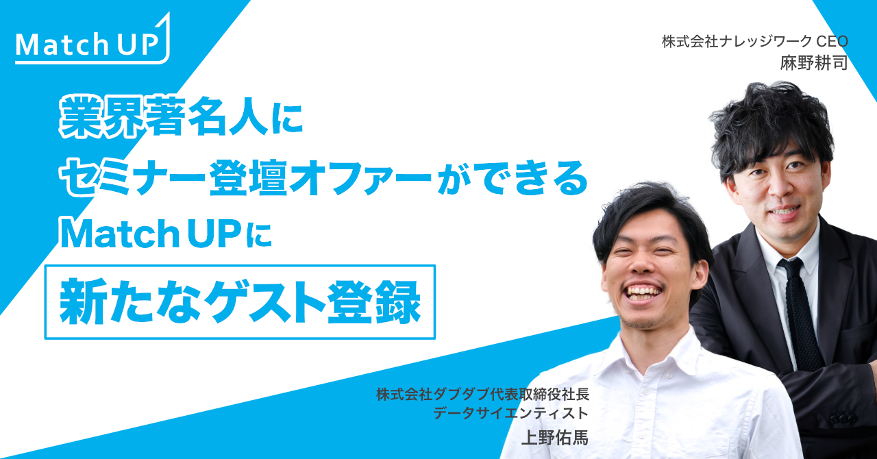 当社は、国内最大級のオンライン展示会「ITトレンド」や、ビジネス動画プラットフォーム「チラヨミ」を通して、多くの企業様、業界著名人の方とのお取引があり、自社のマーケティングノウハウを活かし、このような課題を解消でするため、業界著名人にセミナー登壇オファーができるマッチングプラットフォーム「Match Up」の提供を開始いたしました。