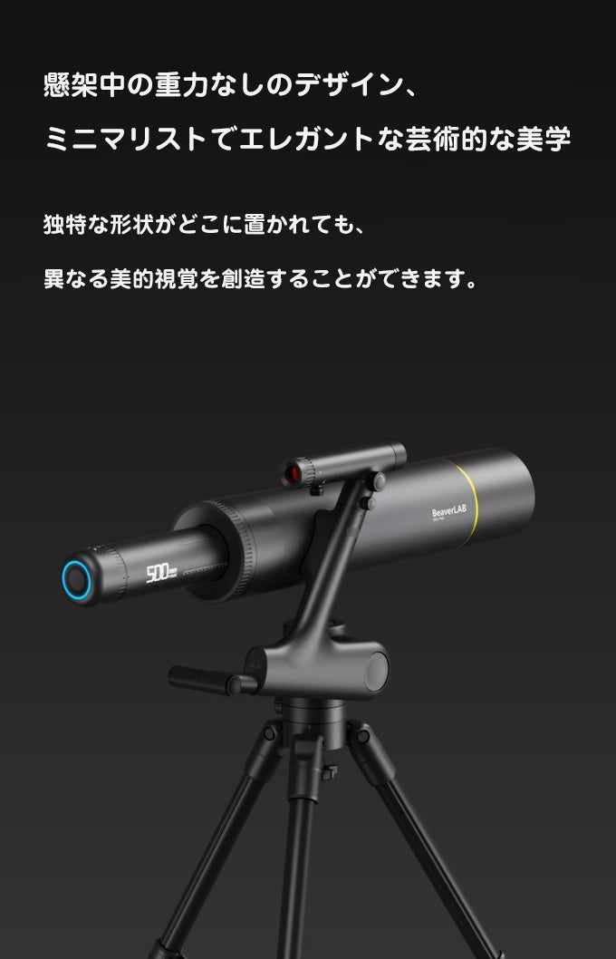 BeaverLABは、スマート顕微鏡「BeaverLAB Pro」で有名になった企業です。重さ500グラムほどで持ち運びに便利でありながらスマートフォンと連動し、最大800倍の倍率でミクロの世界を迫力の映像によって覗き見て、手軽に撮影できるガジェットとして話題になりました。そんなBeaverLABが満を持してリリースした新モデルのスマート天体望遠鏡が、「BeaverLAB Intelligent Astronomical Telescope(DDL-TW1)」です。