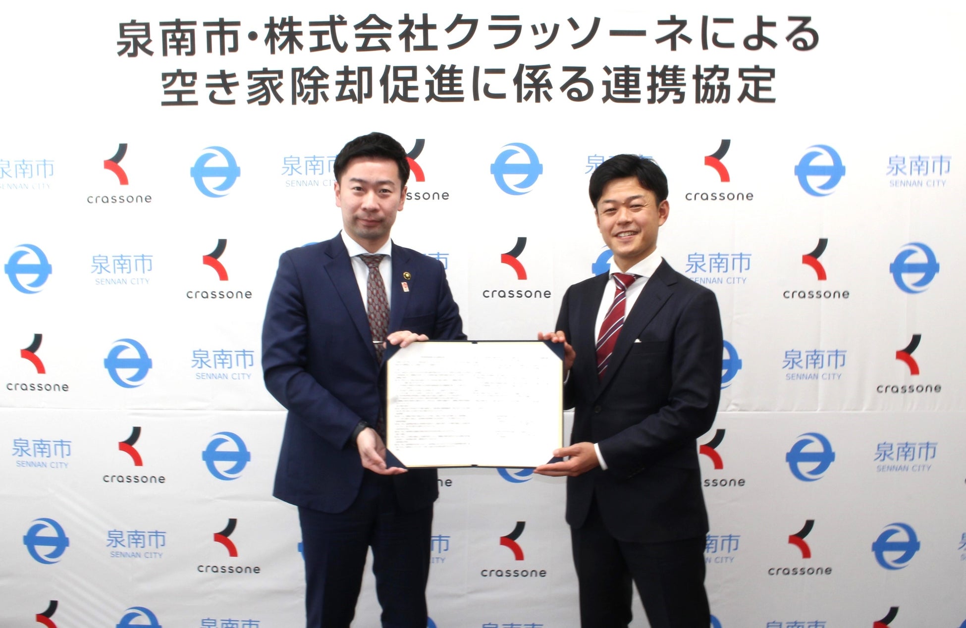 今回、泉南市や当社のそれぞれが持つ資源や特長を活かしながら、市内の管理不全な状態の空き家の除却促進に向けて連携協力することにより、空き家の適正な管理の推進に寄与することを目的として、協定の締結に至りました。取り組みを通じて、空き家の課題を解決するとともに、当社運営の「すまいの終活ナビ」をはじめとしたIT技術やデータを活用して、自治体担当者の住民対応の質の向上や業務効率化など、自治体DXの推進に寄与します。