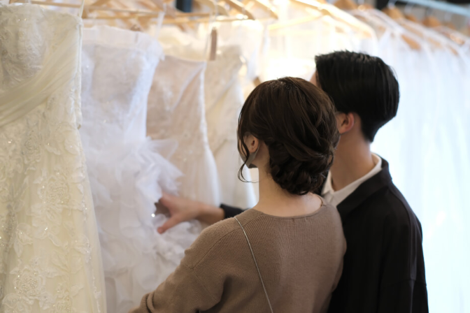 堀越:「『DRESS EVERY』では、コロナ禍の1〜2年前はフォトウェディング用にレースやクレープ素材などのカジュアルで単価を抑えたドレスを購入する花嫁さんが多くいらっしゃいました。一方最近では、コロナ収束の兆しとともに結婚式の開催も徐々に増えているため、結婚式を軸に考えて挙式会場の雰囲気に合った素材やシルエットのウェディングドレスを選択される方が多い印象です。」
