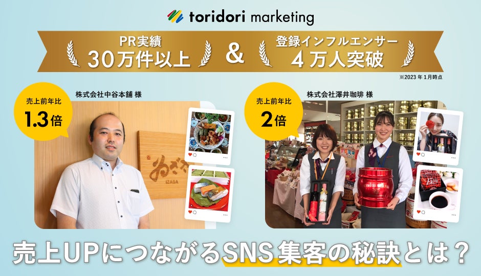 ▼インフルエンサーマーケティングプラットフォーム『toridori marketing』公式サイト:https://top-marketing.toridori.me/
