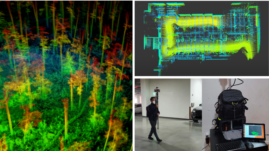 これらのマッピングキットを通じて、例えば、建設プロジェクトにおける進捗状況のモニタリングや検査のほか、林業におけるバイオマス(生物量)の推定、密度や成熟度、間伐計画オペレーションなどの森林分析等を用途として、屋内外の環境を簡単にスキャンすることができます。また、本マッピングキットはカスタマイズ可能で、GNSSや地上基準点を融合してジオリファレンス※1した点群を生成したり、IMUデータを利用してより優れた歪み補正を行い、鮮明な点群スキャンも実現することができます。GNSSが利用可能な地域と利用不可能な地域の両方で活動する顧客にとって、両方の環境で作業できることは、点群データにおけるドリフトやノイズのリスクの対処のために何度もマッピングを行う必要がないため、マッピング時間の大幅な短縮が期待できます。