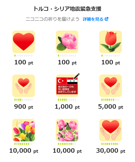 今回立ち上げた動画に対して「ギフト」を贈っていただくと、贈られたギフトの量に応じて算定した金額(※)を、当社からトルコ・シリアの救済支援のために寄付させていただきます。ニコニコユーザーの皆さんの温かい祈りを動画に乗せて、トルコ・シリアに届けたいと考えております。