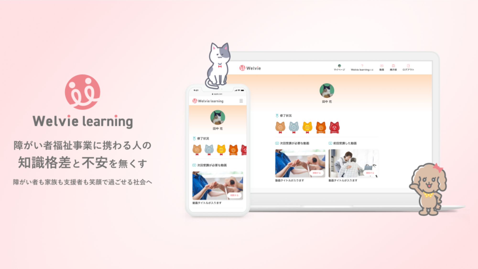 障がい者福祉施設で働く人向けの動画研修システム「ウェルビーラーニング」を運営。いつでも、どこでも、だれでも簡単に学べるeラーニングシステムで、障がい福祉事業に携わる人の知識格差と不安をなくすことを目的としています。