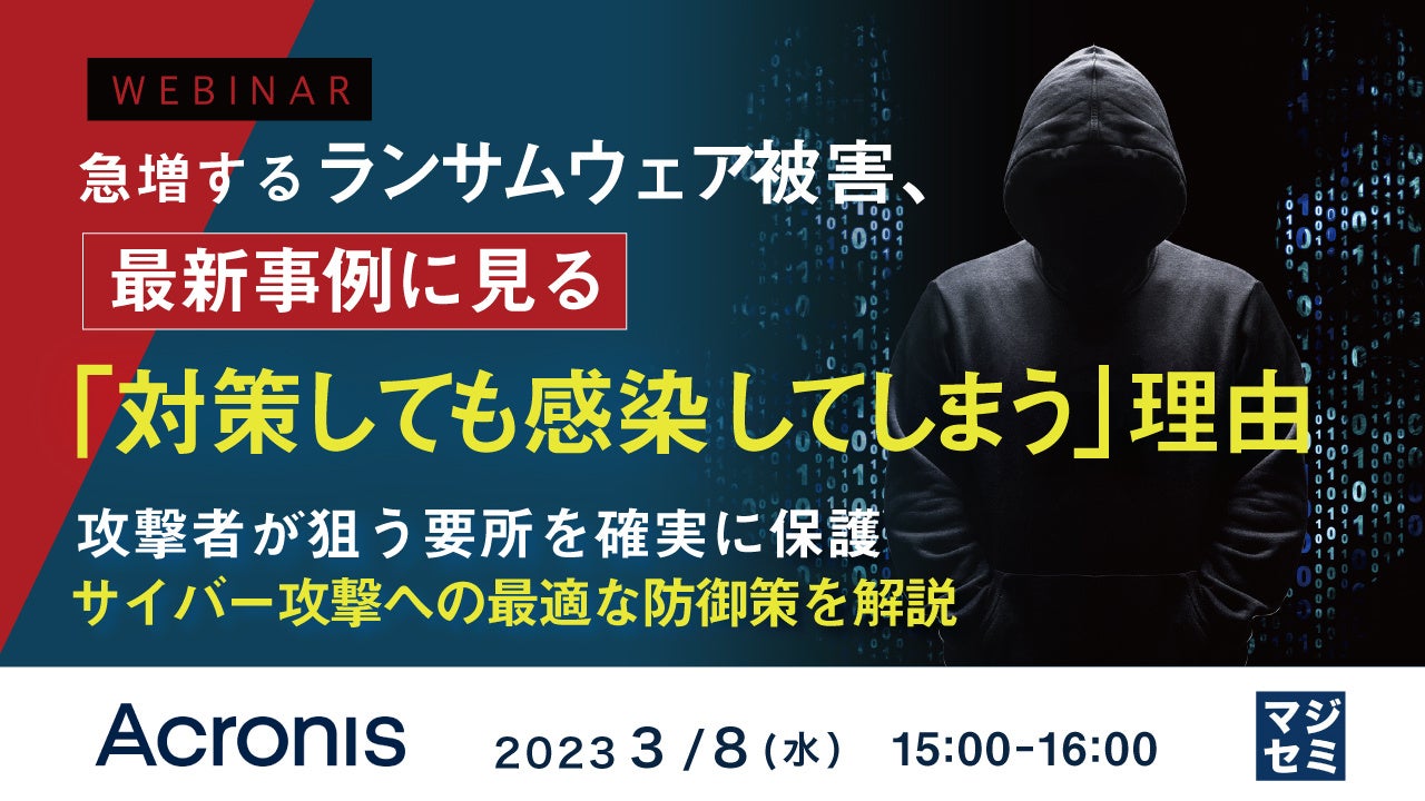 ・本セミナーは、2023年2月20日開催セミナー「被害拡大が止まらないランサムウェア、最新事例に学ぶ『感染してしまう』理由」と同じ講演内容を含んでおります。多数のご要望により、追加開催させていただきます。