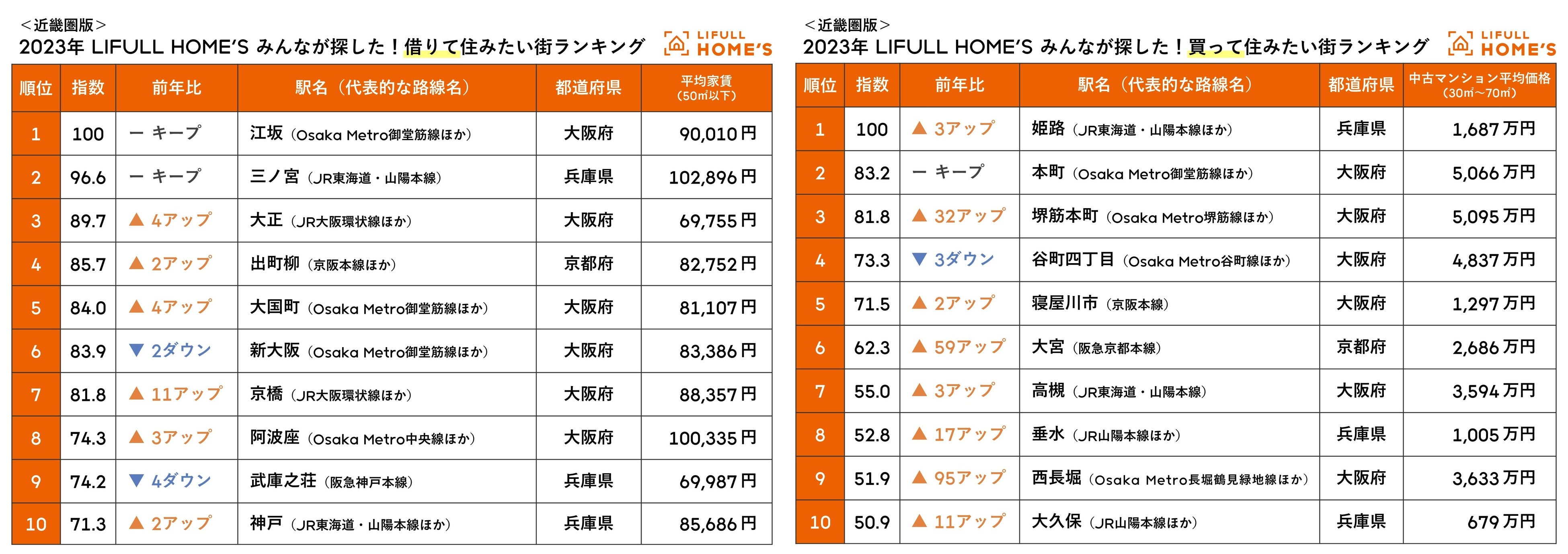 <近畿圏版> 2023年 LIFULL HOME’S みんなが探した!住みたい街ランキング