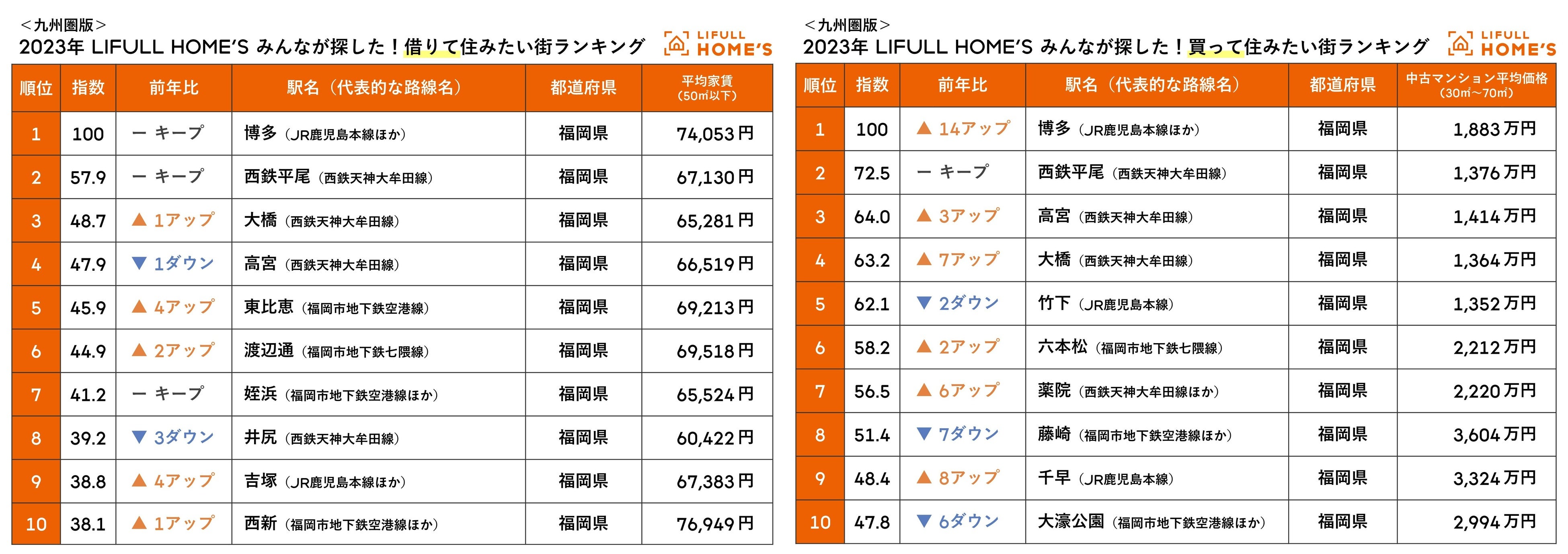 <九州圏版> 2023年 LIFULL HOME’S みんなが探した!住みたい街ランキング