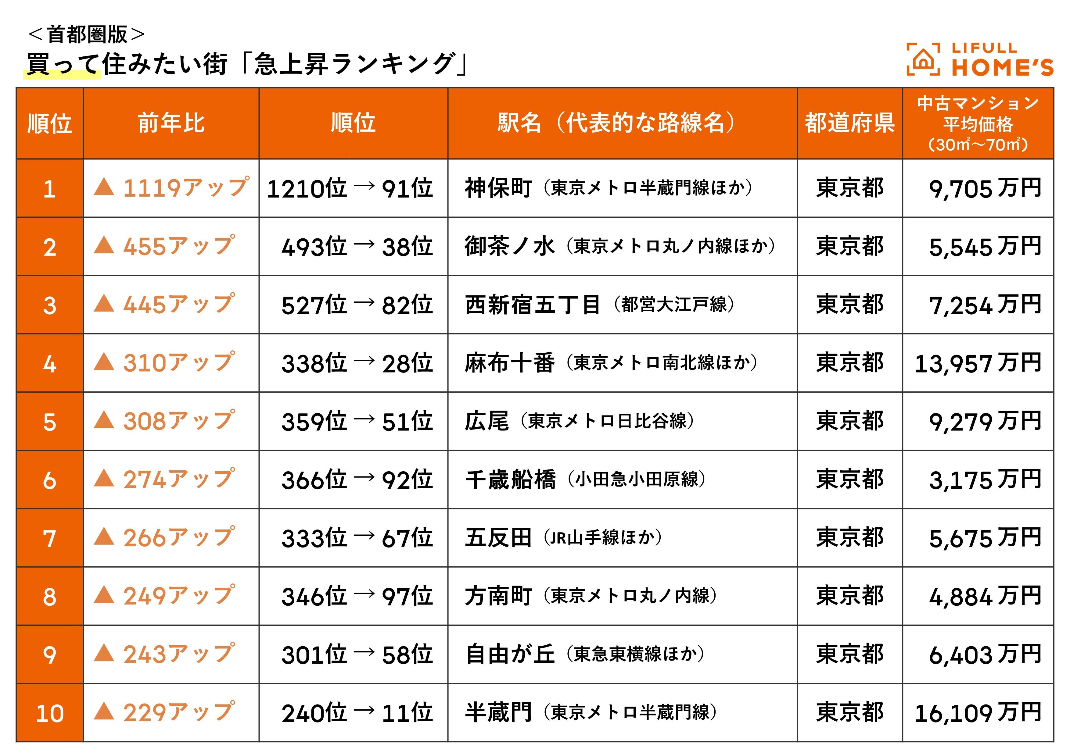 ■次にくる街はどこだ!「急上昇ランキング」1位は1119ランクアップの「神保町」