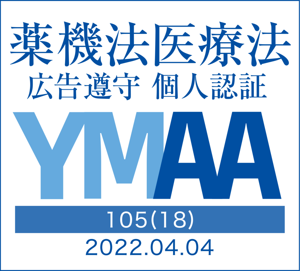 YMAA認証マークとはYMAA認証マーク制度は薬機法、医療広告ガイドラインの知識を習得した広告取扱担当者として評価し、その旨を示すYMAAマークを付与し、事業活動に関してYMAAマークの使用を認める制度です。
