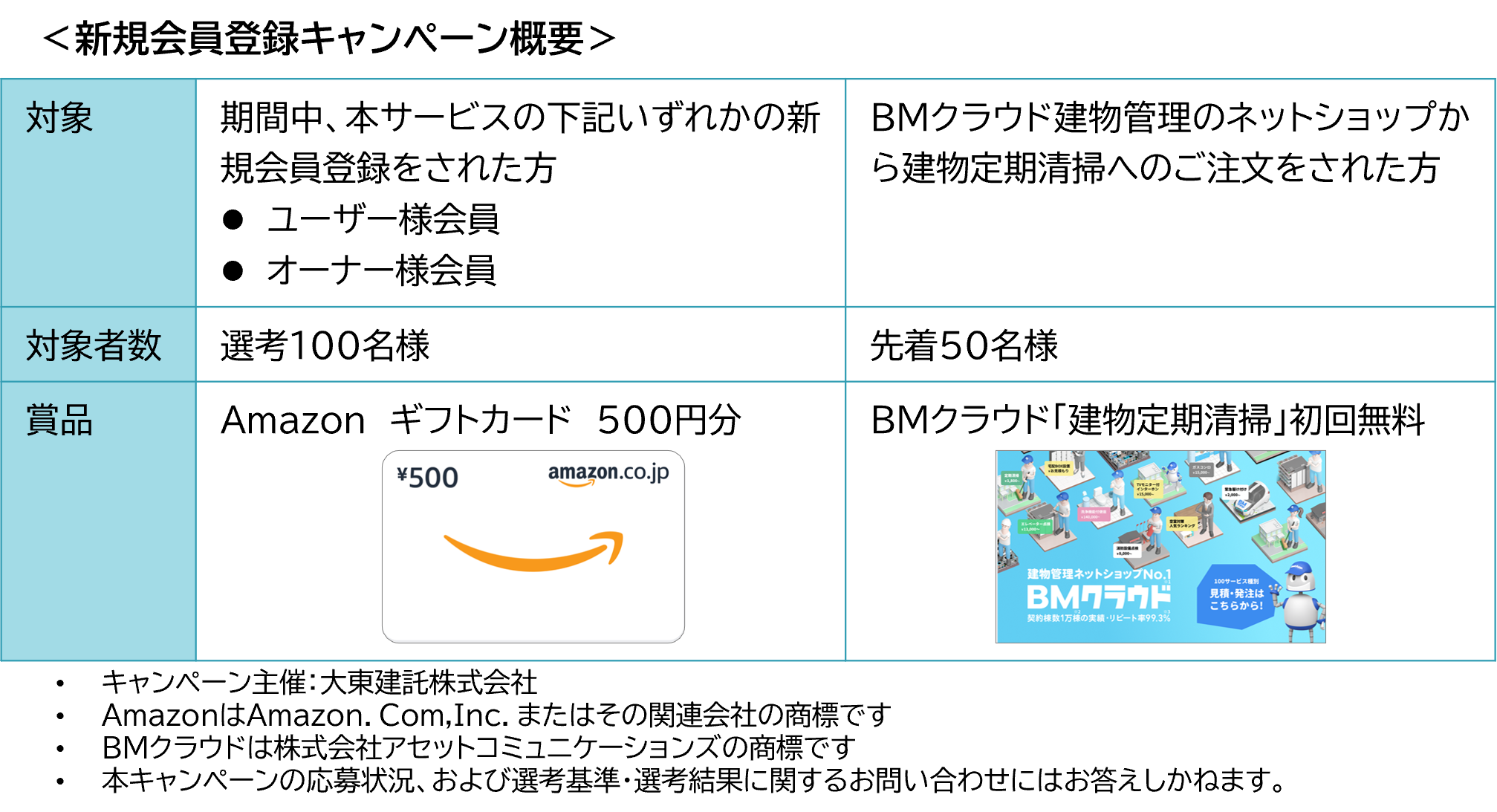 『自ら賃貸』のサービス開始に先立ち、2月7日から3月31日の期間、Amazonギフトカード500円分などをプレゼントする新規会員登録キャンペーンを実施します。